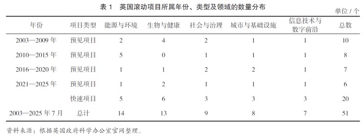 “滚动项目”是指通过聚焦某一主题,研究科技对该主题未来发展的潜在影响与贡献,同时考察社会、经济、政治和文化等各类因素的关键作用,旨在为政府决策提供科学依据。根据选题深度、耗费时间和预期成果丰硕度,滚动项目具体可以分为预见项目(Foresight Projects)和快速项目(Rapid Projects)两种。