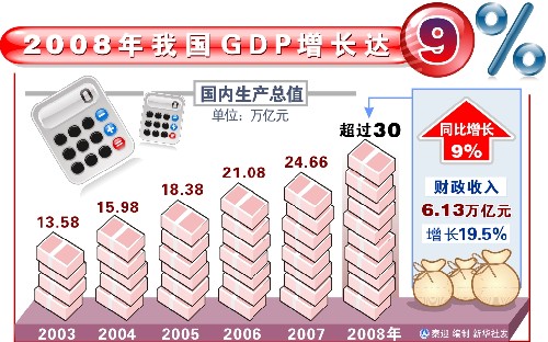 图表:2008年我国GDP增长达9%