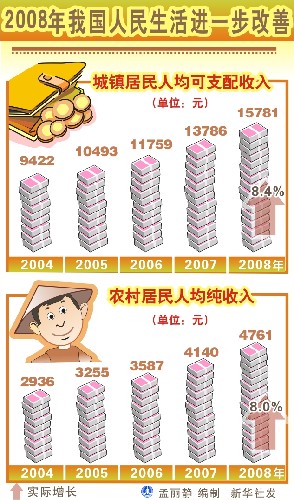 图表:2008年我国人民生活进一步改善