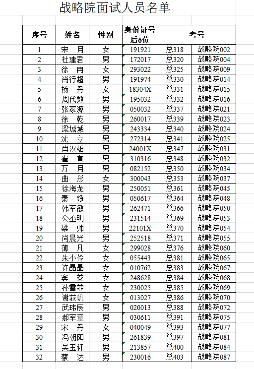 二、面试的具体时间安排,将以短信或邮件的方式逐一通知,面试人员名单详见附件。